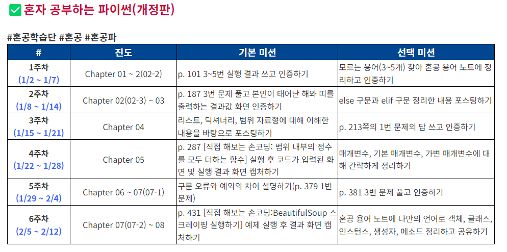 또 작심삼일로 끝날까봐 나를 채찍질해 줄 무언가가 필요했는데, 혼공학습단 11기에 선정되어서 다행이었다.